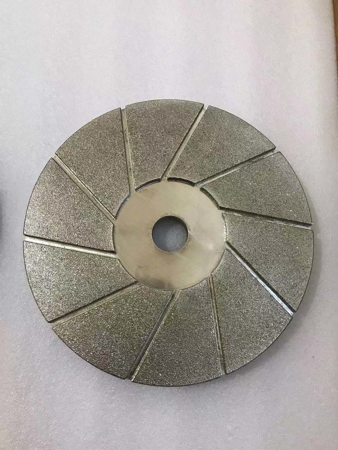 Worden de diamant malende wielen gegalvaniseerd en het nikkel bedekt met een laag. Het galvaniseren biedt vele voordelen over andere toepassingen aan. Het voert ook een hoger tarief van de voorraadverwijdering uit en zal verscheidene maanden duren. Zij worden bevestigd in de machine van het schuurmiddelenmes