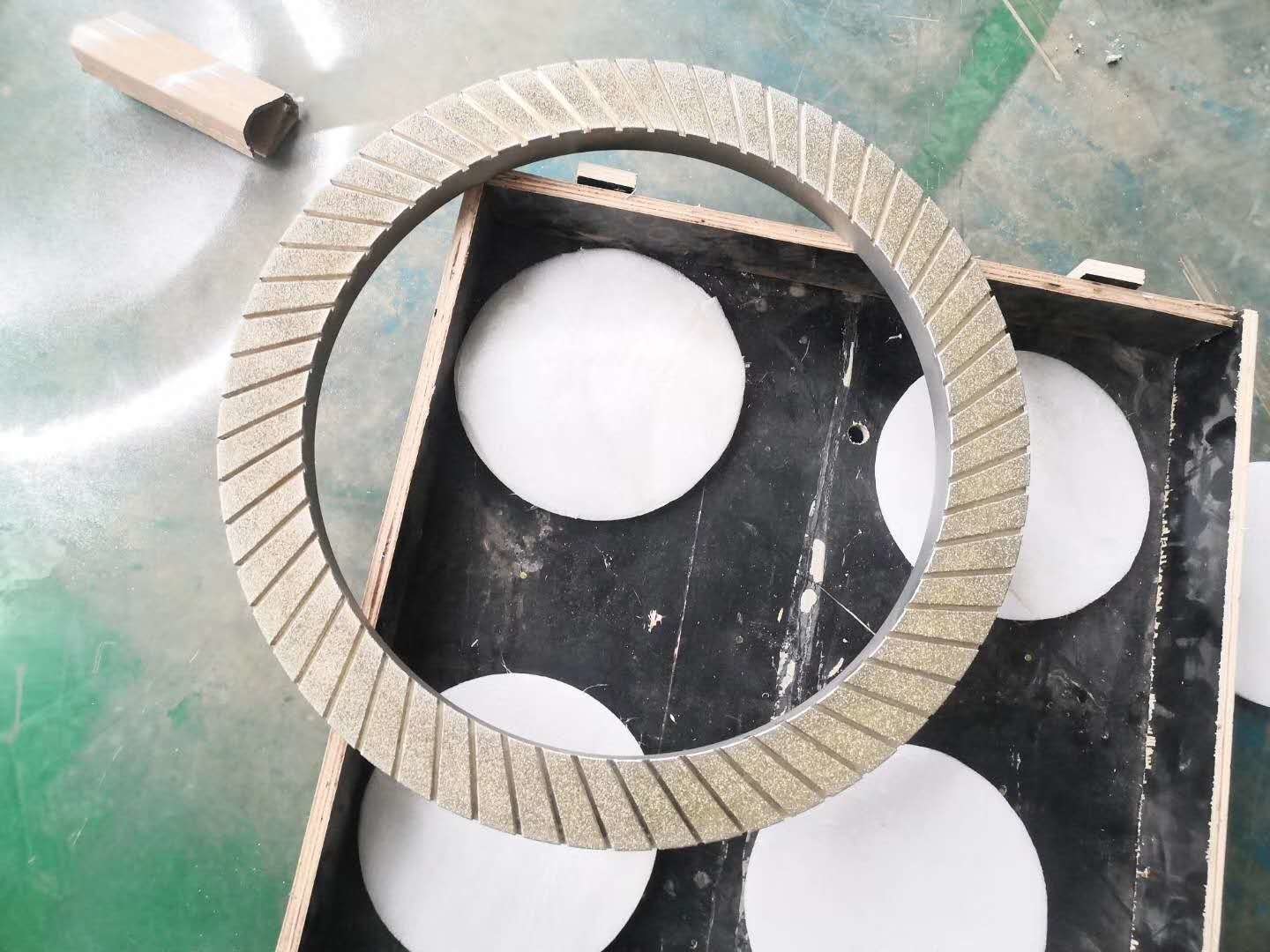 Worden de diamant malende wielen gegalvaniseerd en het nikkel bedekt met een laag. Het galvaniseren biedt vele voordelen over andere toepassingen aan. Het leidt tot een agressievere band over andere toepassingen en zal een vorm langer houden. Het voert ook een hoger tarief van de voorraadverwijdering uit en zal verscheidene maanden duren. Zij worden ontworpen voor slechts het scherpen van Hard Materiaal en zouden niet voor andere toepassingen moeten worden gebruikt.
