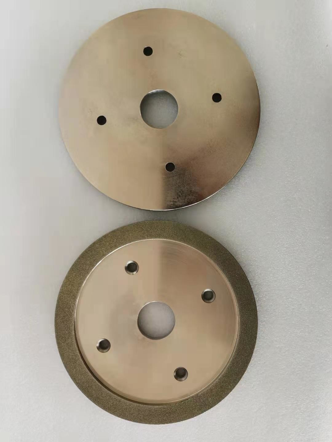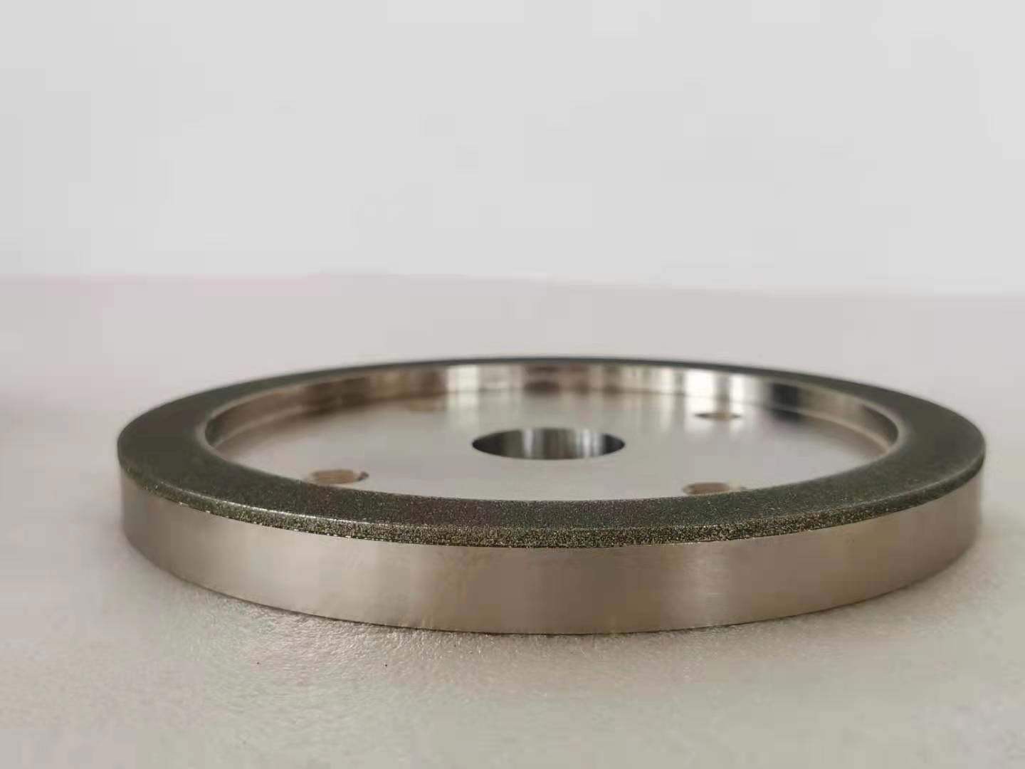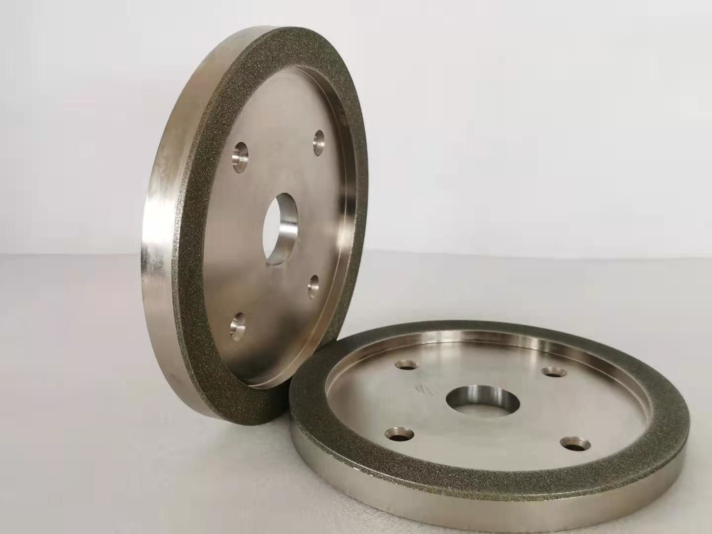 Voor diamant malende wielen, bevat de het werk laag van het malende wiel diamant schurende korrels, en de diamantschuurmiddelen worden geplakt op het substraat door een metaalband. Eerst, is de dikte van de gedeponeerde metaalband 20% van de hoogte diamant schurende korrels (het schuren), en dan wordt de metaalband gebruikt om (dik maken) de diamant schurende korrels te plakken, en de dikte is ongeveer 2/3 van de hoogte schurende korrels. Met inbegrip van diamant het kleden zich wielen, rijdt de diamant voor het malen of het snijden.