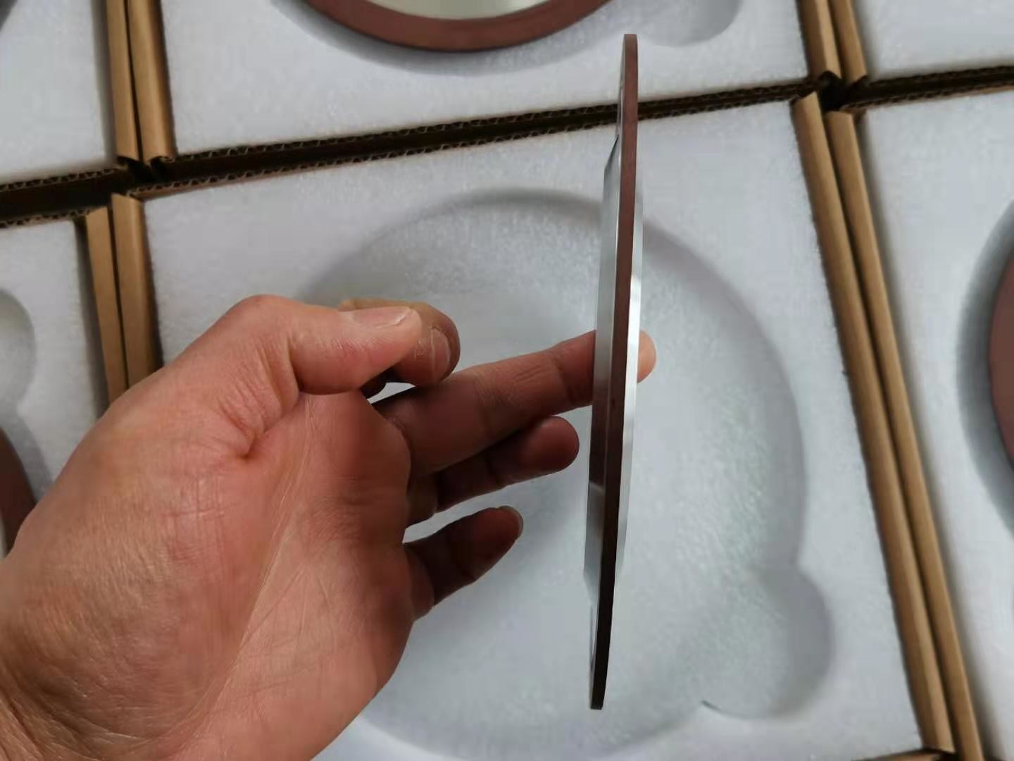 Bij de diamanten snijwielen bevat de werklaag van het slijpwiel diamanten abrasieve korrels en worden de diamanten abrasives aan het substraat gebonden door een metalen binding.de dikte van de afgezette metaalbinding is 20% van de hoogte van de diamanten slijpgraan (sand), en dan wordt de metaalbinding gebruikt om de diamanten slijpkorrels te binden (verdikken), waarbij de dikte ongeveer 2/3 van de hoogte van de slijpkorrels bedraagt.met een diameter van niet meer dan 50 mm,.