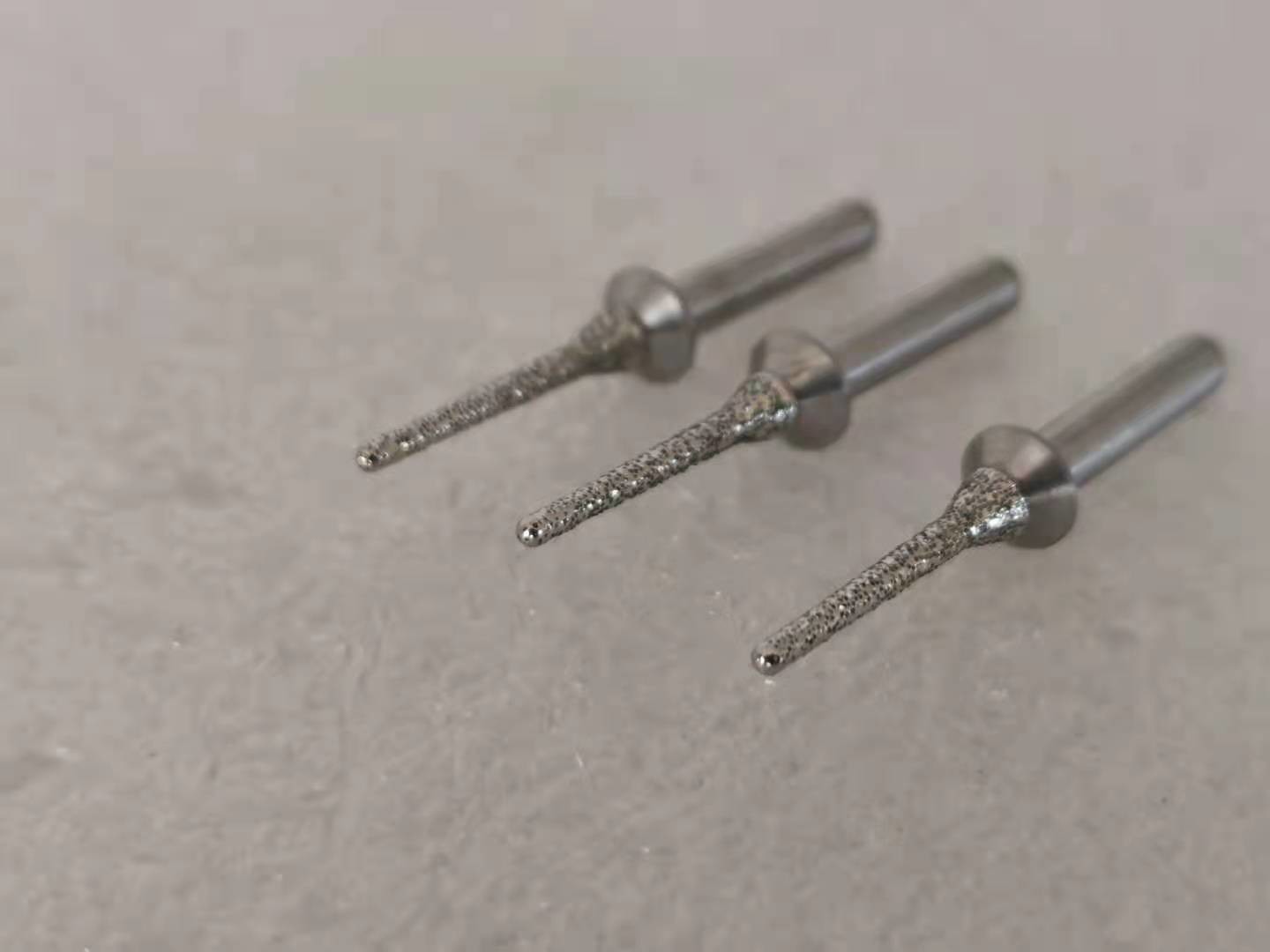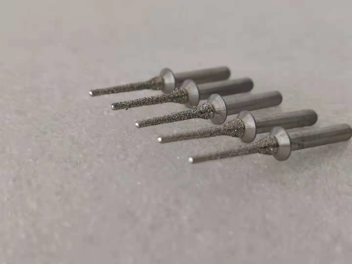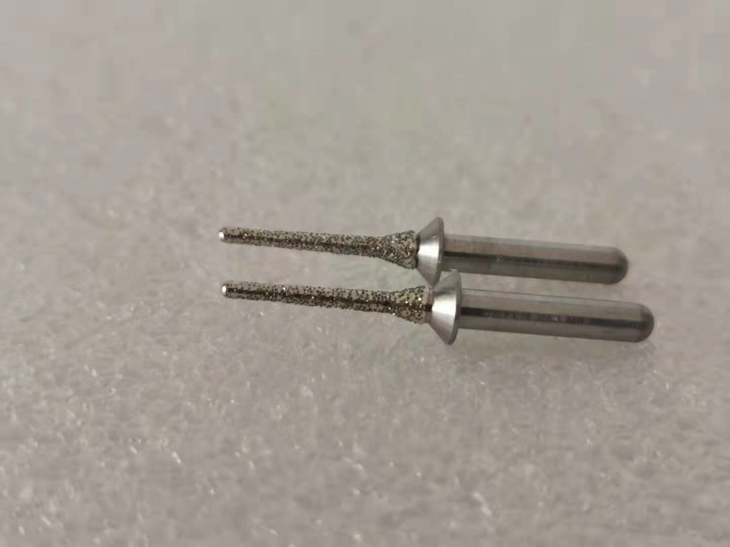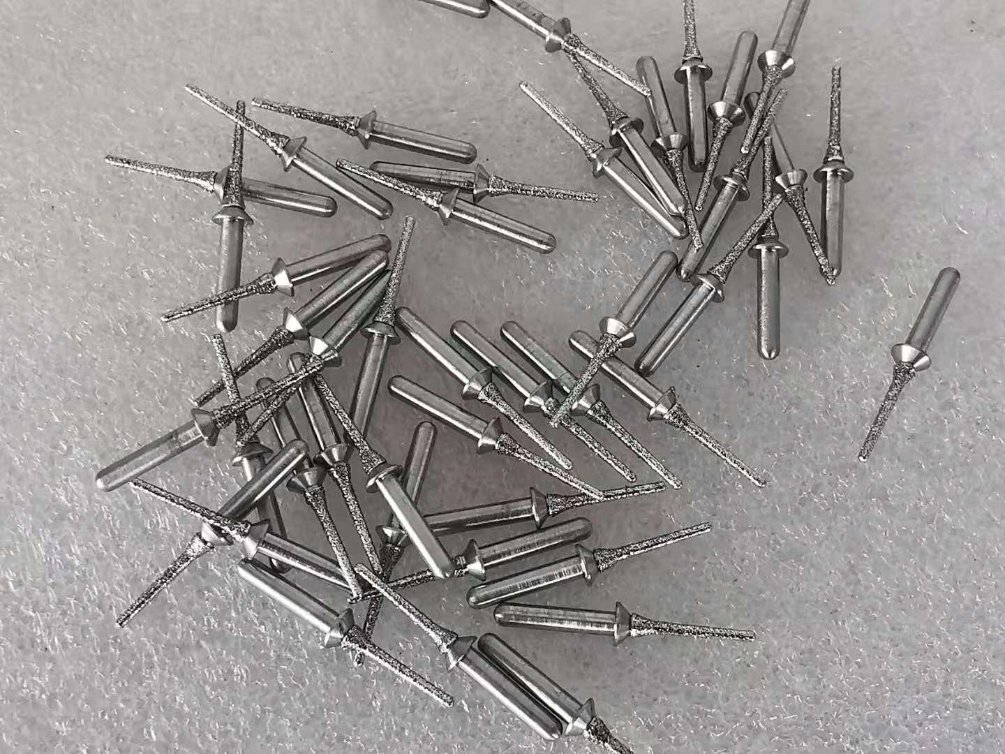 Beschrijving: Deze doornen kenmerken de stelen van gehard staal en multi-layer diamant met een laag bedekte oppervlakten. De diamantdeeltjes worden geplakt op de doorn door het proces van „Electrogrip“, dat de blootstelling van het diamantdeeltje verzekerend een vrije cuttting actie maximaliseert die zeer hitte en slijtage vermindert