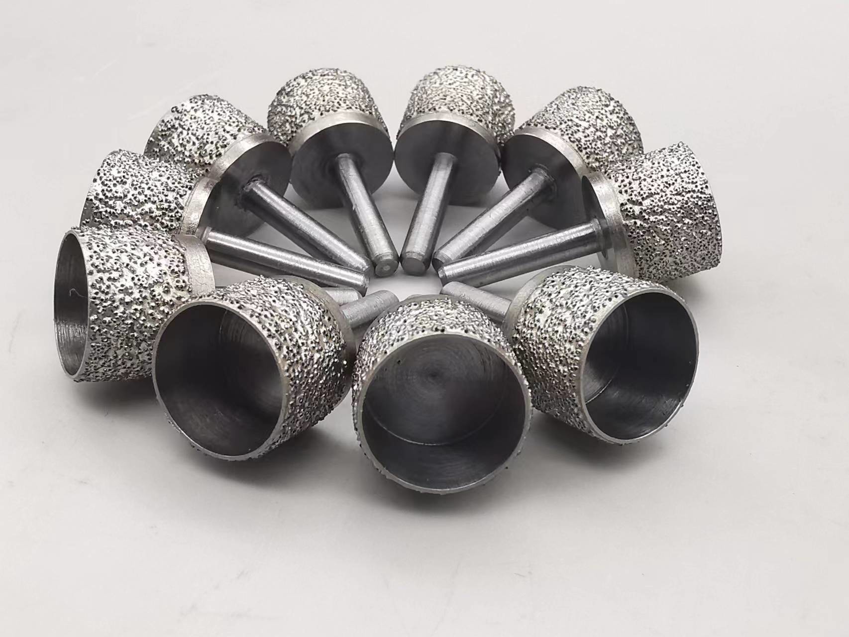 De dimond opgezette punten, kunnen aan poetsmiddel evenals malen worden gebruikt. Het kan om het even welke ruwe oppervlakte snel en precies oppoetsen. Hoofdzakelijk gebruikt zoals malende wielen voor binnengat, het interne malen en oppoetsen.