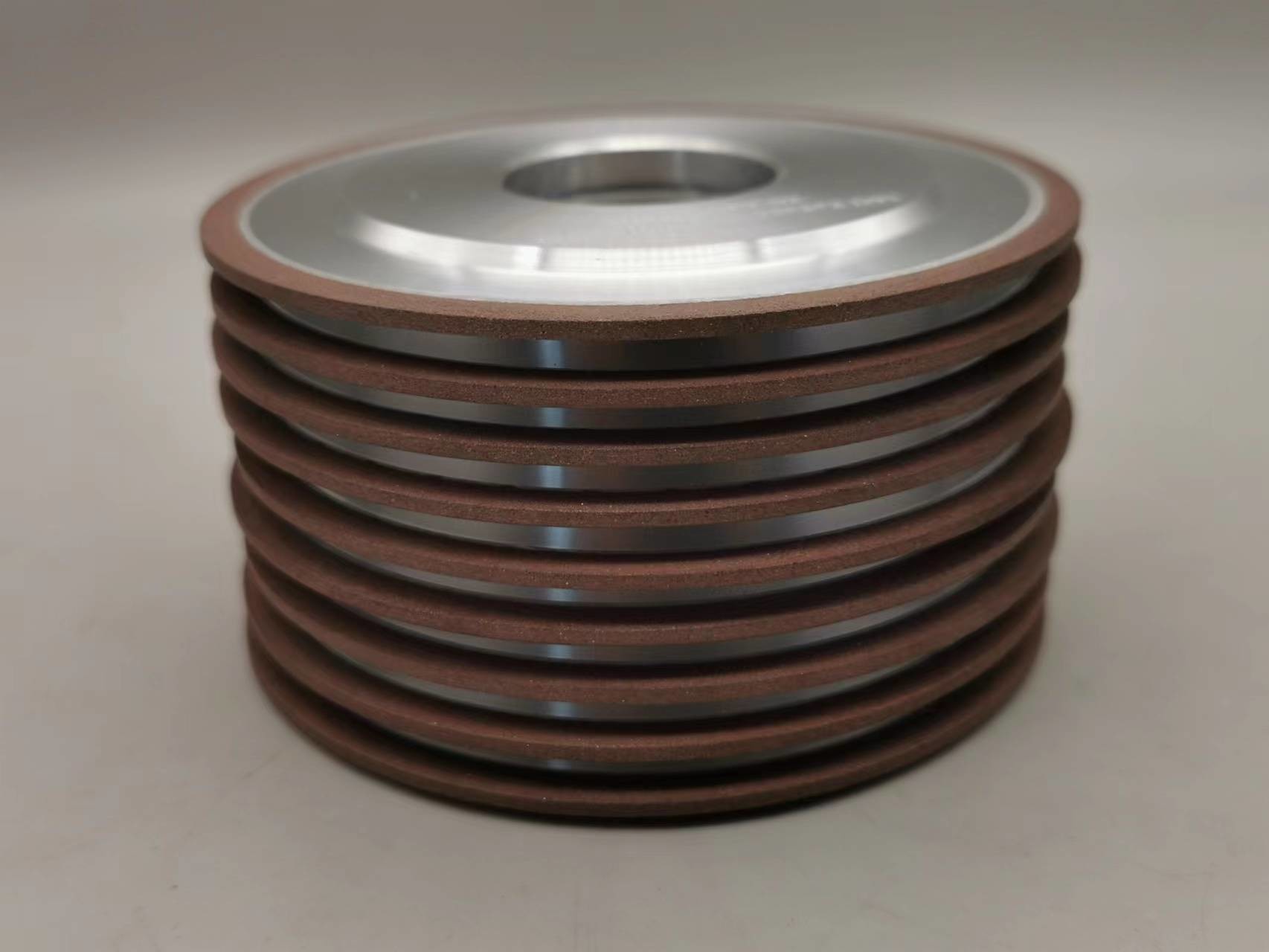 De harsband wordt gewoonlijk met hitte-genezen die hars gemaakt hoofdzakelijk uit phenolic de bandwiel van de resibhars heeft wordt samengesteld uitstekende het malen capaciteit, eindigt de oppervlakte en minimale scherf. Het wordt wijd toegepast voor moeilijke aan-machinematerialen zoals gecementeerd carbide, keramiek, glas, en silicium evenals ferroous materialen zoals hoge snelheidsstaal en gesinterde ijzerhoudende metalen.