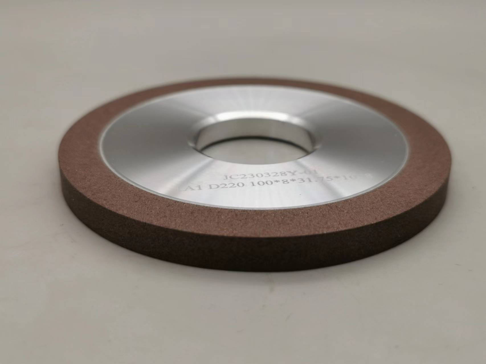 De harsband wordt gewoonlijk met hitte-genezen die hars gemaakt hoofdzakelijk uit phenolic de bandwiel van de resibhars heeft wordt samengesteld uitstekende het malen capaciteit, eindigt de oppervlakte en minimale scherf. Het wordt wijd toegepast voor moeilijke aan-machinematerialen zoals gecementeerd carbide, keramiek, glas, en silicium evenals ferroous materialen zoals hoge snelheidsstaal en gesinterde ijzerhoudende metalen.
