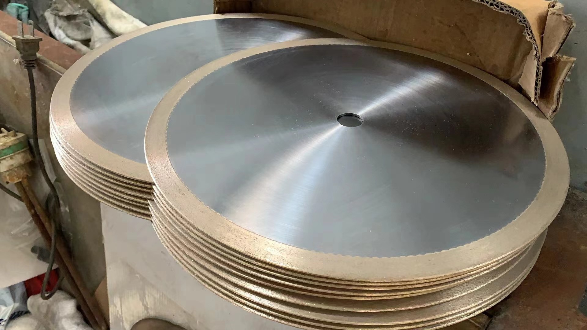 Metalen diamanten snijplaten met een stalen kern zijn samengesteld uit staalplaten en een werklaag van brons.