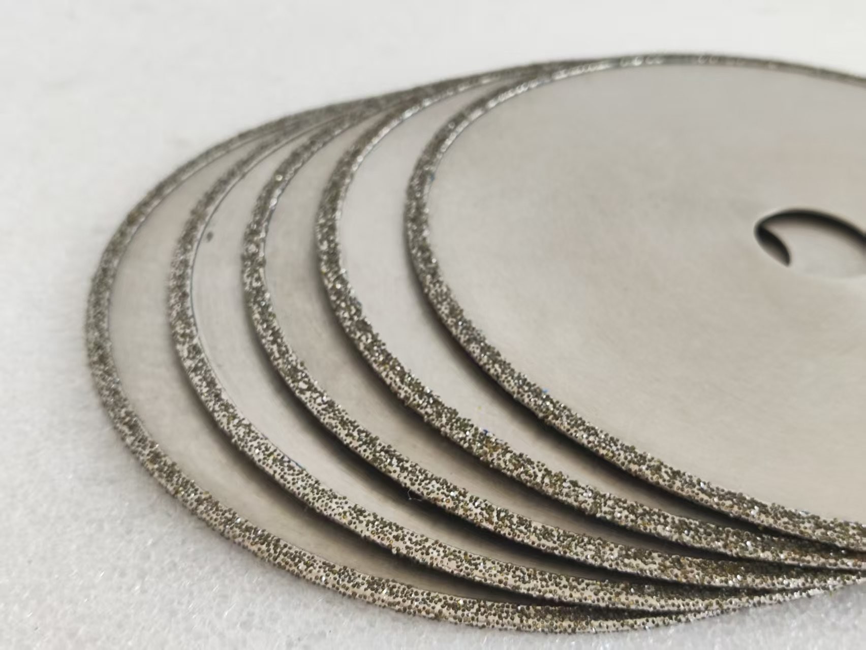 1A1R Elektroplaat Diamant Snijblad heeft een dubbelschaal elektroplaatproces om hoogsterk diamant slijpmiddel gelijkmatig te consolideren op het oppervlak van het stalen substraat tot een ultradunne,met een vermogen van niet meer dan 50 W. ontworpen voor het efficiënt snijden van harde en broze niet-metalen materialen (zoals keramiek, glas, kwarts, halfgeleiders, steen) en superharde legeringen,Het heeft de kenmerken van een smalle sneeHet is geschikt voor high-end velden zoals precisie elektronische componenten verwerking, optische apparaat scheiding, en edelsteen snijden.