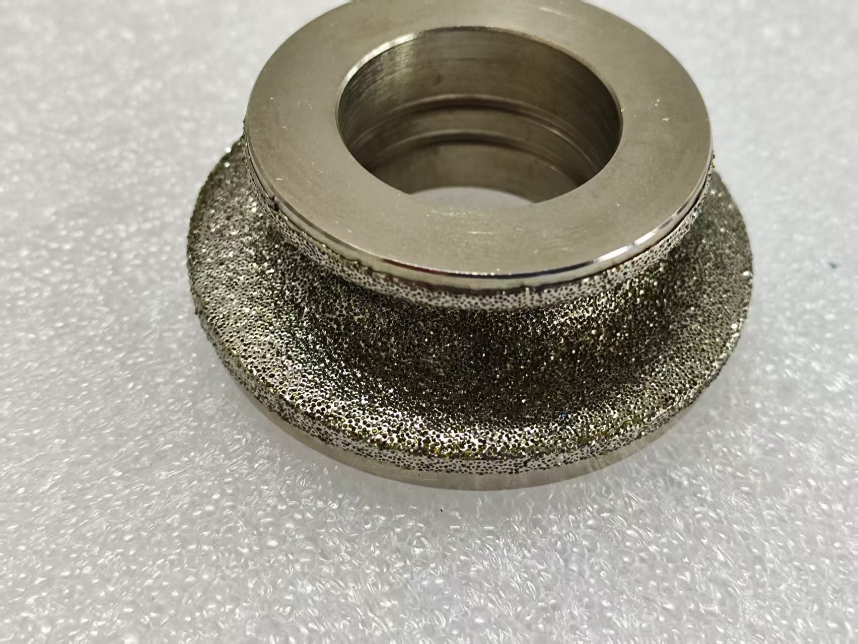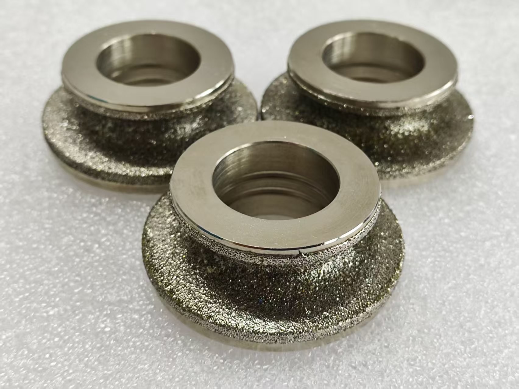 Elektroplatering:Diamanten slijpgraan wordt stevig bevestigd op het oppervlak van de matrix door middel van galvaniseringsprocessen zoals nikkelplating.De diamantdeeltjes zijn gelijkmatig verdeeld om een hoge hardheid snijlaag te vormen.