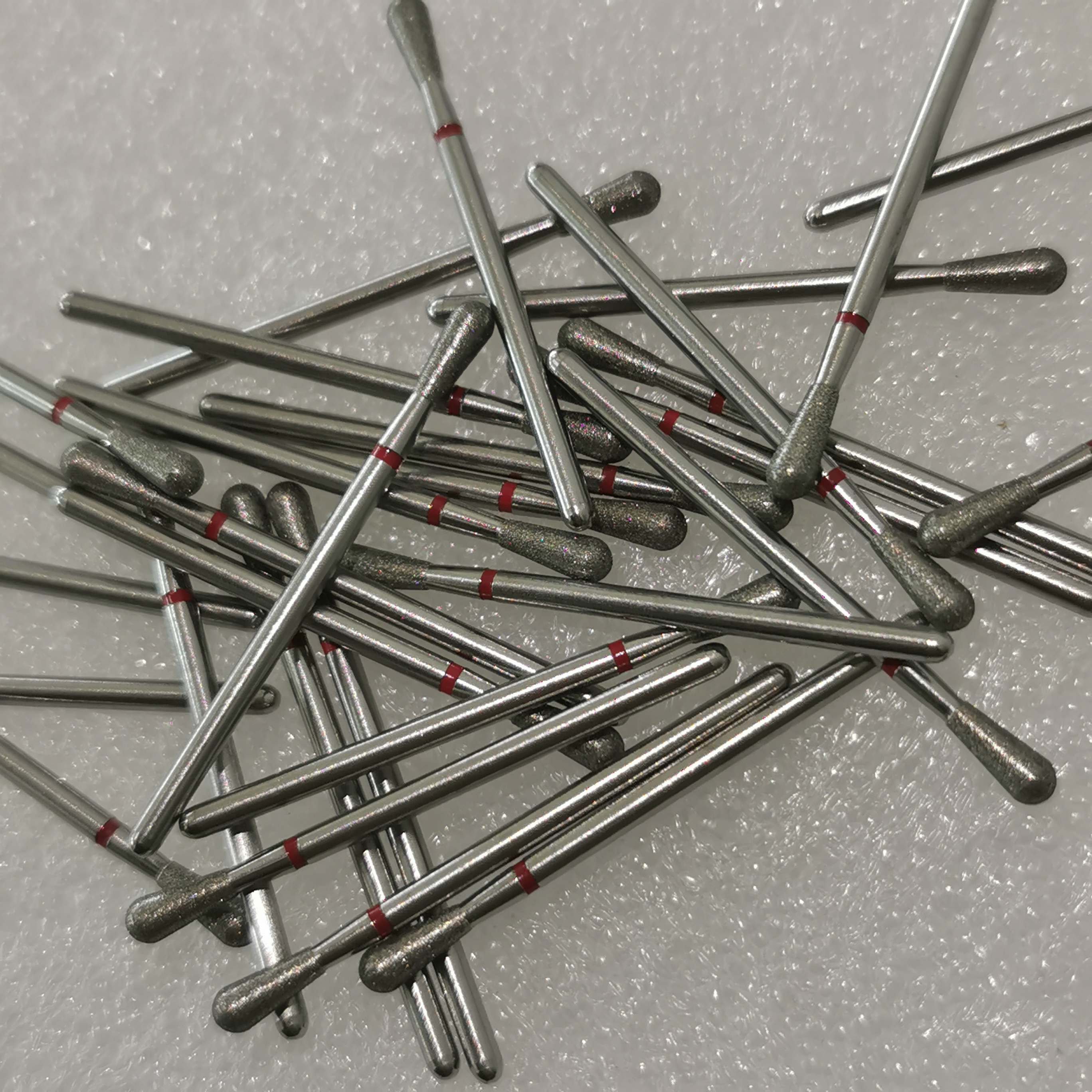 De basis van de diamanten burs is meestal gemaakt van roestvrij staal.,De verbindingslaag bestaat voornamelijk uit nikkel of nikkel-cobaltlegering.De slijplaag bestaat uit diamantdeeltjesEr worden verschillende deeltjesgroottes, concentraties en soorten geselecteerd volgens de verwerkingsvereisten.