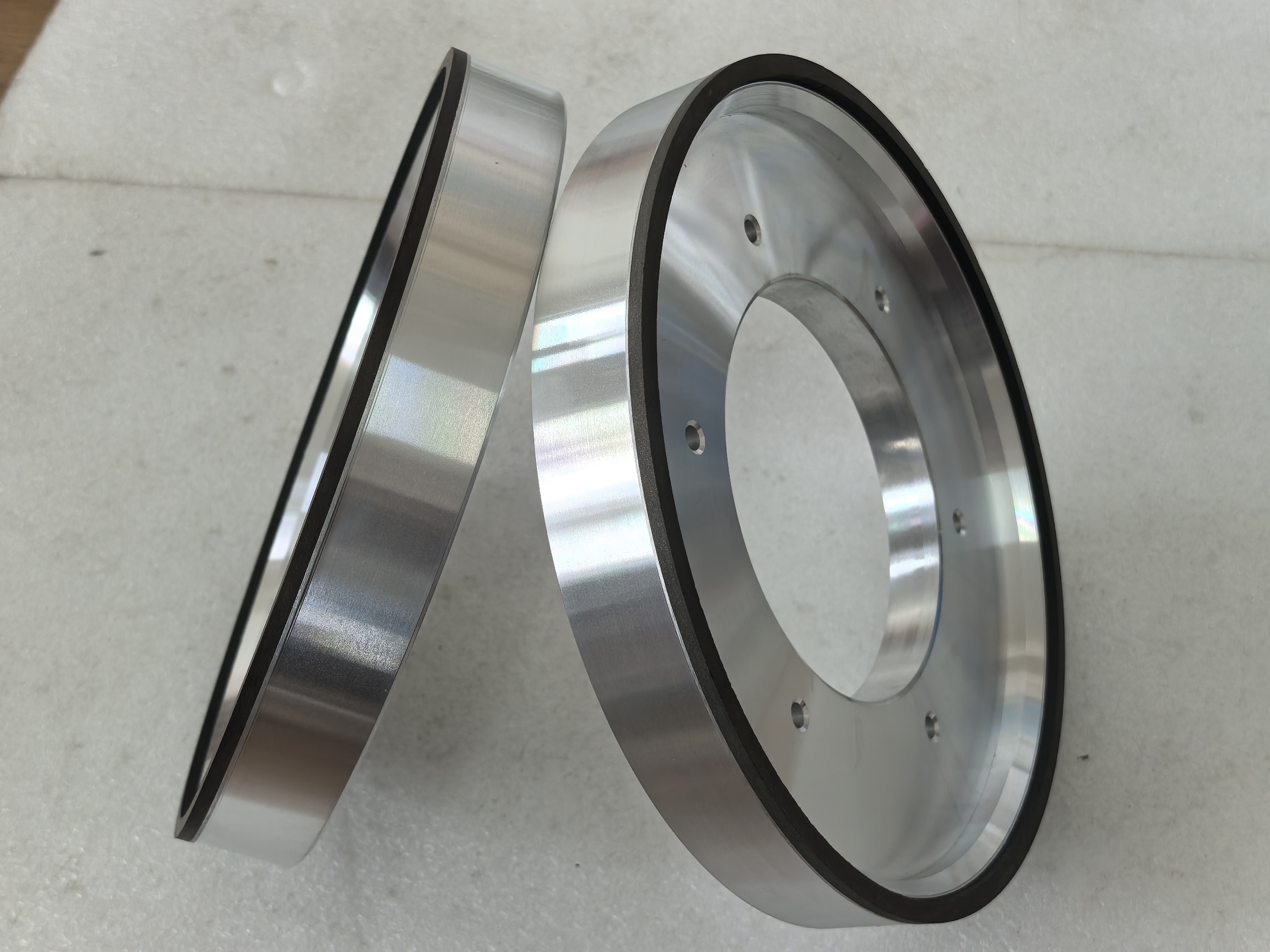Resin bond diamond grinding wheel is a high-efficiency precision grinding tool that combines the superhard properties of diamond and the elasticity of resin and is widely used in the field of high-precision machiningHet substraat is meestal gemaakt van aluminiumlegering of staal om de structurele sterkte te waarborgen en de installatie te vergemakkelijken;het bindmiddel is gewoonlijk fenolhars, epoxyhars of polyimide, die elasticiteit biedt en een lage temperatuurtemperatuur heeft om thermische beschadiging van de diamant te voorkomen;de slijplaag bestaat uit een mengsel van diamantdeeltjes en harsbindmiddel, en de diamantdeeltjesgrootte kan worden aangepast naargelang de vraag (van grof slijpen tot superfijn slijpen).